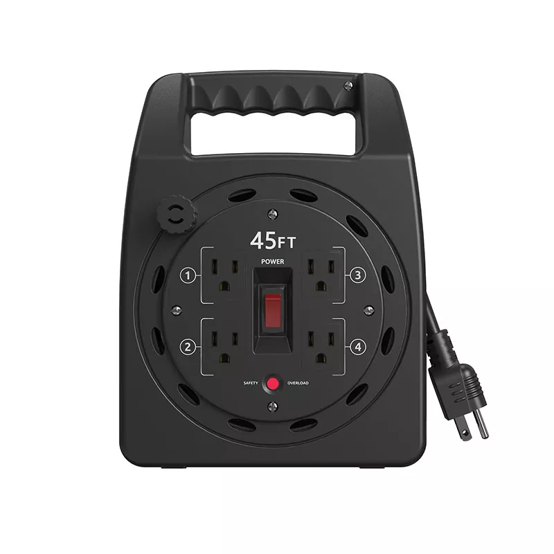 گھر > مصنوعات > ڈوری کی ریل > پلاسٹک کی ہڈی کی ریل > اوور لوڈ پروٹیکشن کے ساتھ 4 آؤٹ لیٹس پلاسٹک کورڈ ریل 45 فٹ